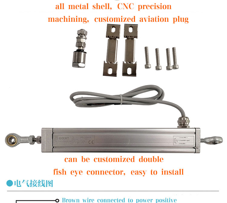 | Brief introduction:The linear displacement sensor based on potentiometer principle is a linear displacement sensor with sliding rheostat structure. The sensor can supply 5V or 10V power, output 0-5V, 0-10V voltage signal, or 12-24V power supply. It is equipped with transmission module to output 0-5V, 0-10V, 4-20mA analog signal, which is convenient to connect with PLC control system for processing and calculation.