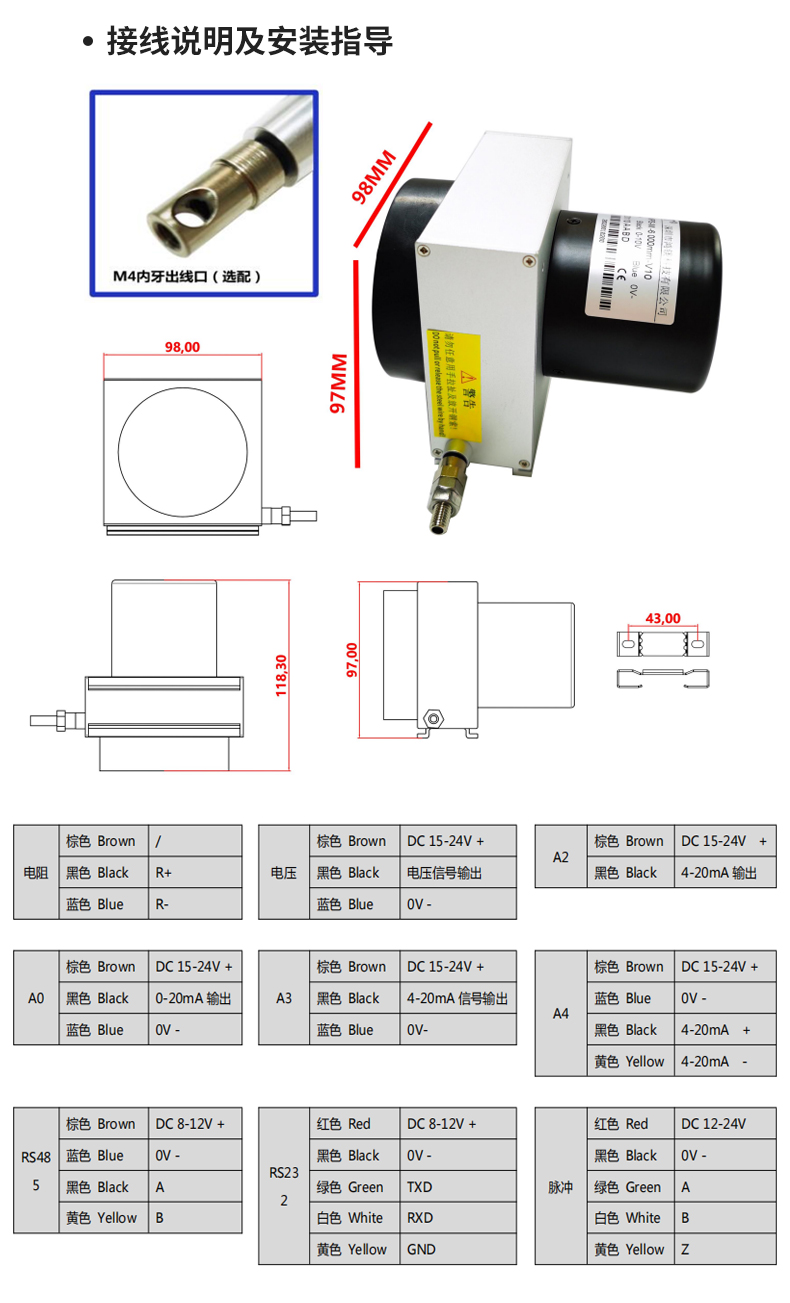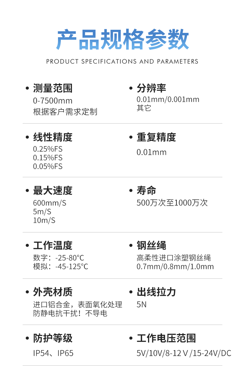 拉繩位移傳感器閘門開度儀高精度拉繩編碼器模擬量數(shù)字量信號(hào)輸出電子尺